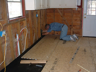 DH was fighting his allergies this weekend, so he didn't get as much done as he wanted to. Still, he was able to get the sheetrock ready for me to paint.